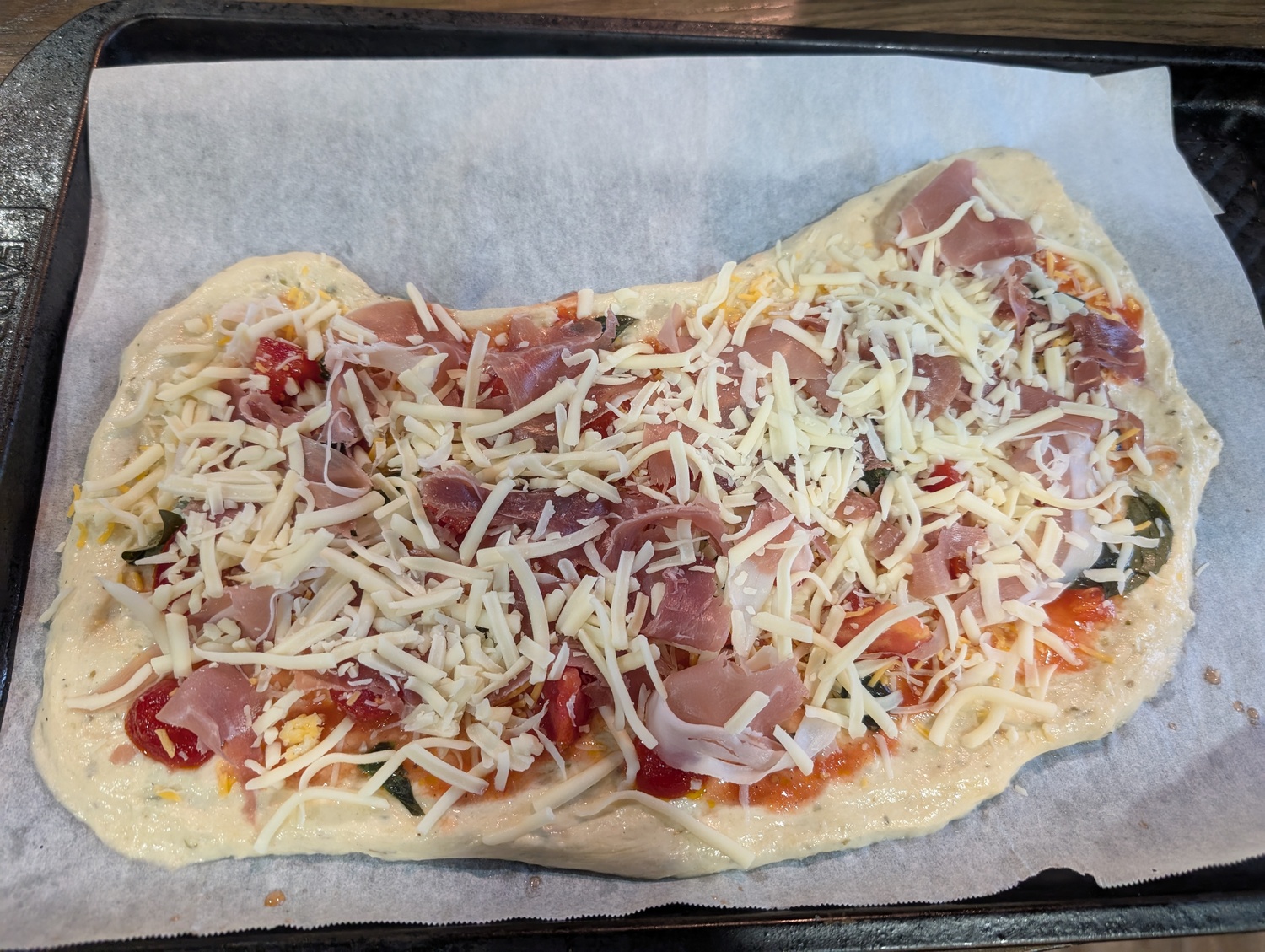 In a 10 or 12 inch heavy-bottomed stainless steel or cast-iron skillet, heat oil over medium-high heat until sufficiently pre-heated. Add onion and carrots, season slightly with a healthy pinch of kosher salt. Sauté until translucent, about 8 minutes.Add garlic and bell pepper. Continue cooking until garlic is fragrant but not scorched.Increase heat to high. Add beef and pork and cook, breaking apart the meat with a wooden spoon until mostly browned. Approximately 10 minutes.Add wine and deglaze. Boil off the wine until it is mostly evaporated, 3-4 minutes at least.Stir in tomatoes with all liquid if using canned. Reheat to boiling and then reduce heat to medium-low.Add ketchup and tomato pasteSeason with more salt and select italian herbs to your liking.Simmer the now mostly completed sauce, uncovered, for at least 20 minutes or until the sauce has thickened sufficiently.Preheat oven to 375.B. Béchamel