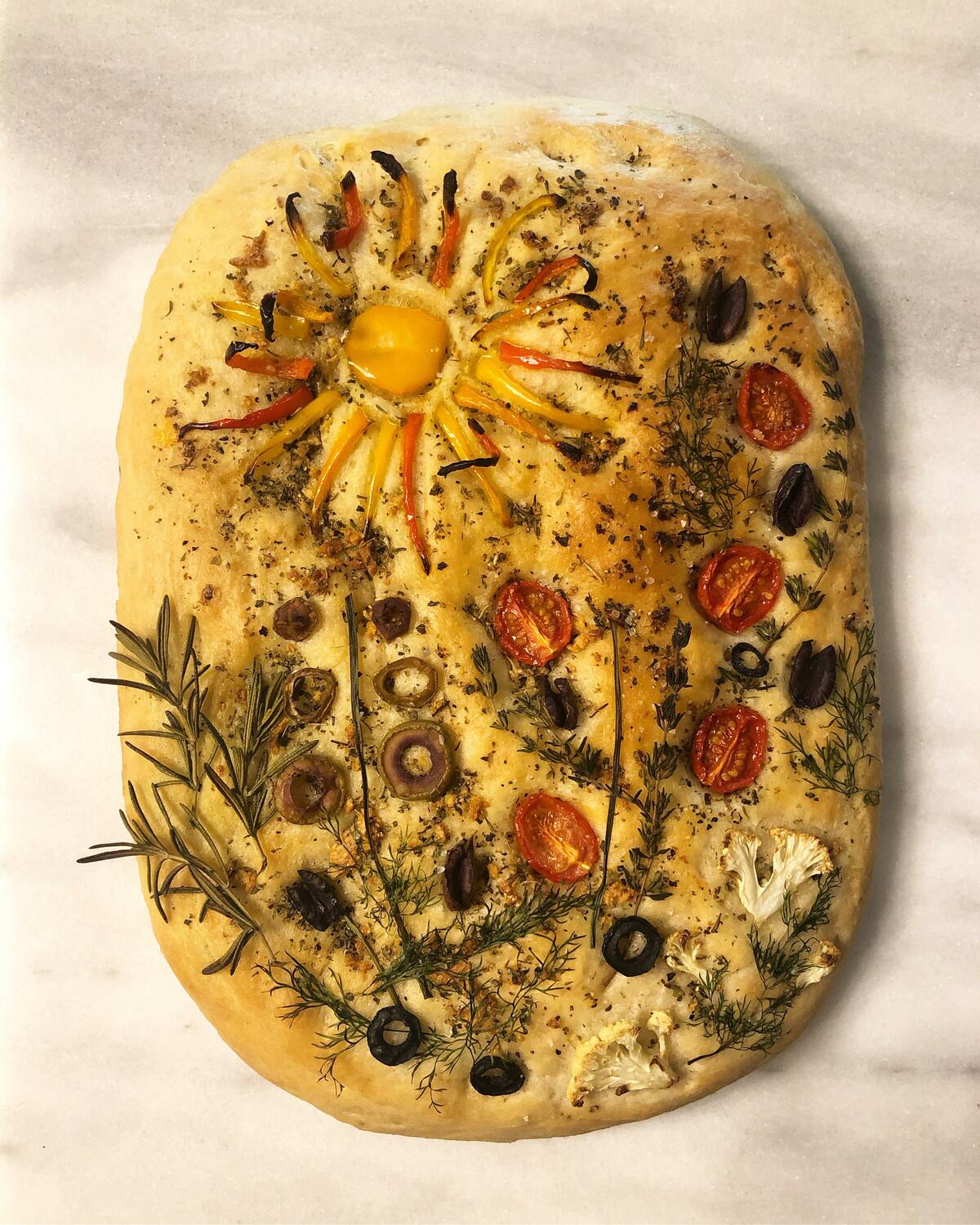 I was inspired by vineyardbaker on Instagram and decided to try focaccia bread art for Easter. I used the recipe from this site for the focaccia.