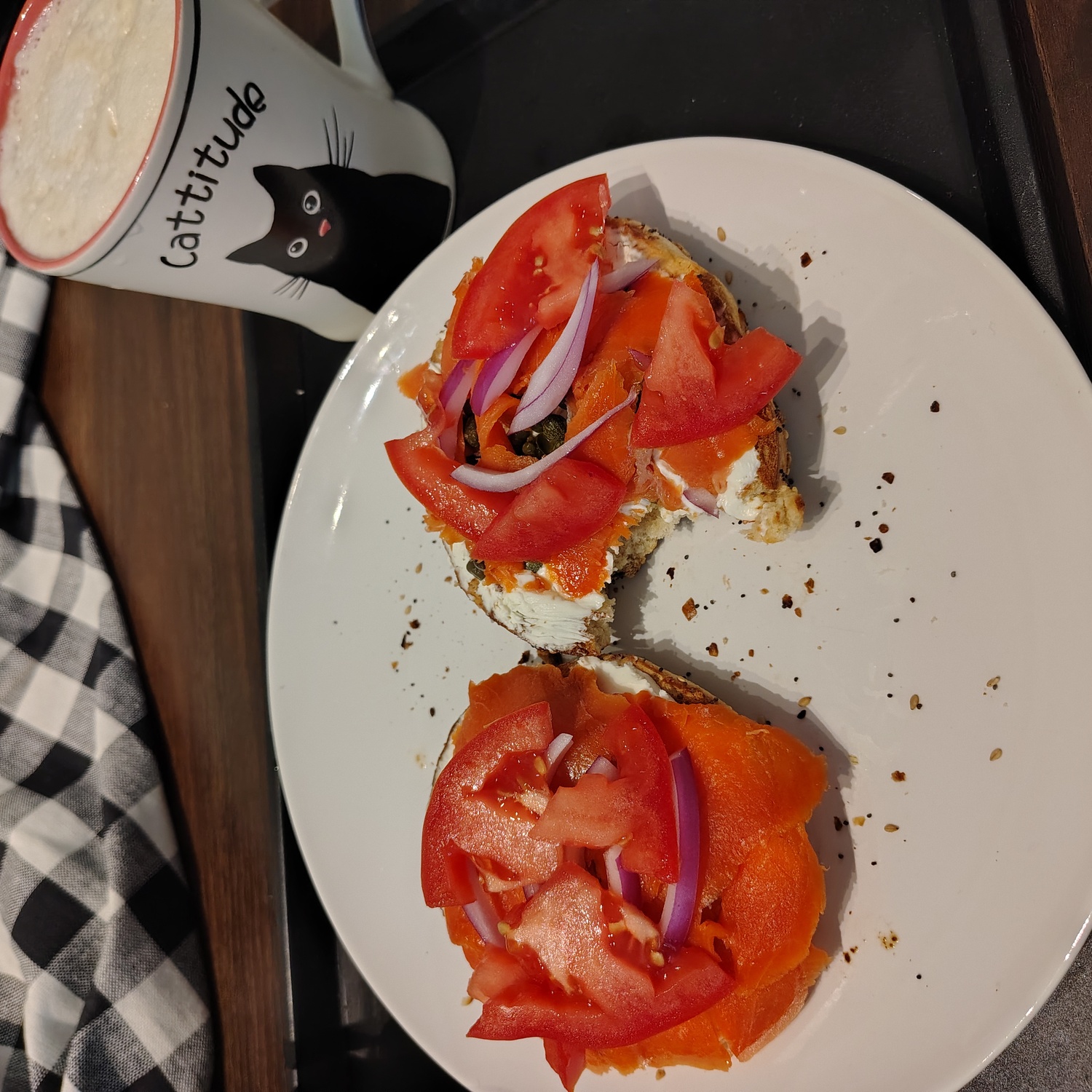 Toasted everything bagel cream cheese