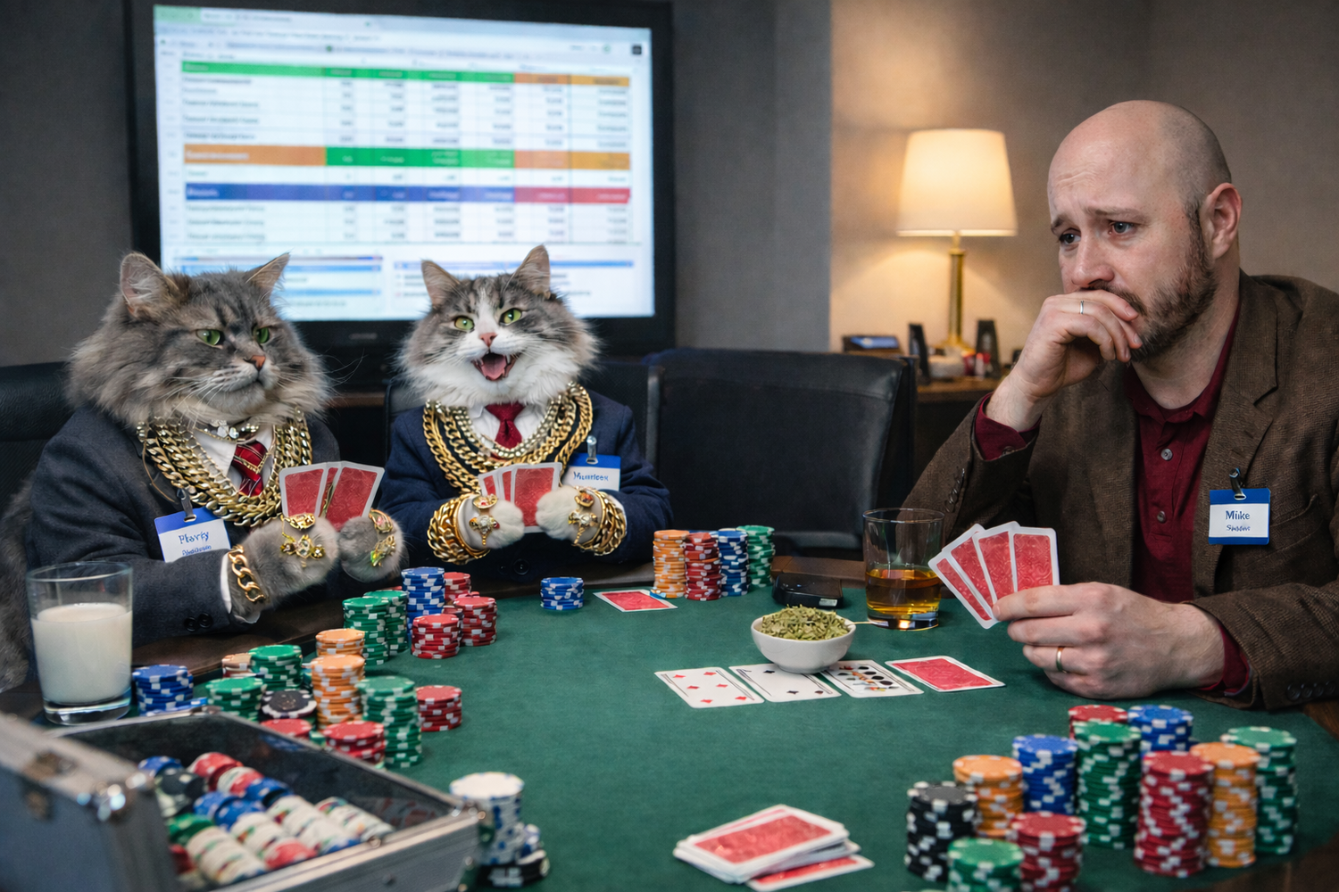 Yes, the cats drink milk out of whiskey glasses. No further questions.